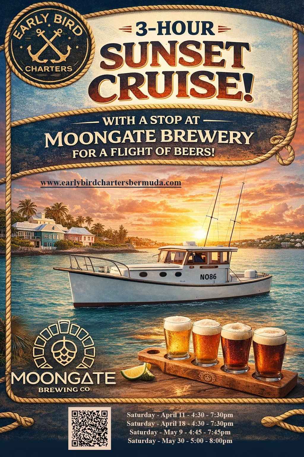 We’ve teamed up with Moongate Brewery for this season’s Spring Group Charters! We’ll be offering three-hour group charters touring the waters of St. George’s, with a “stop in” at Moongate Brewery for a flight of beers!